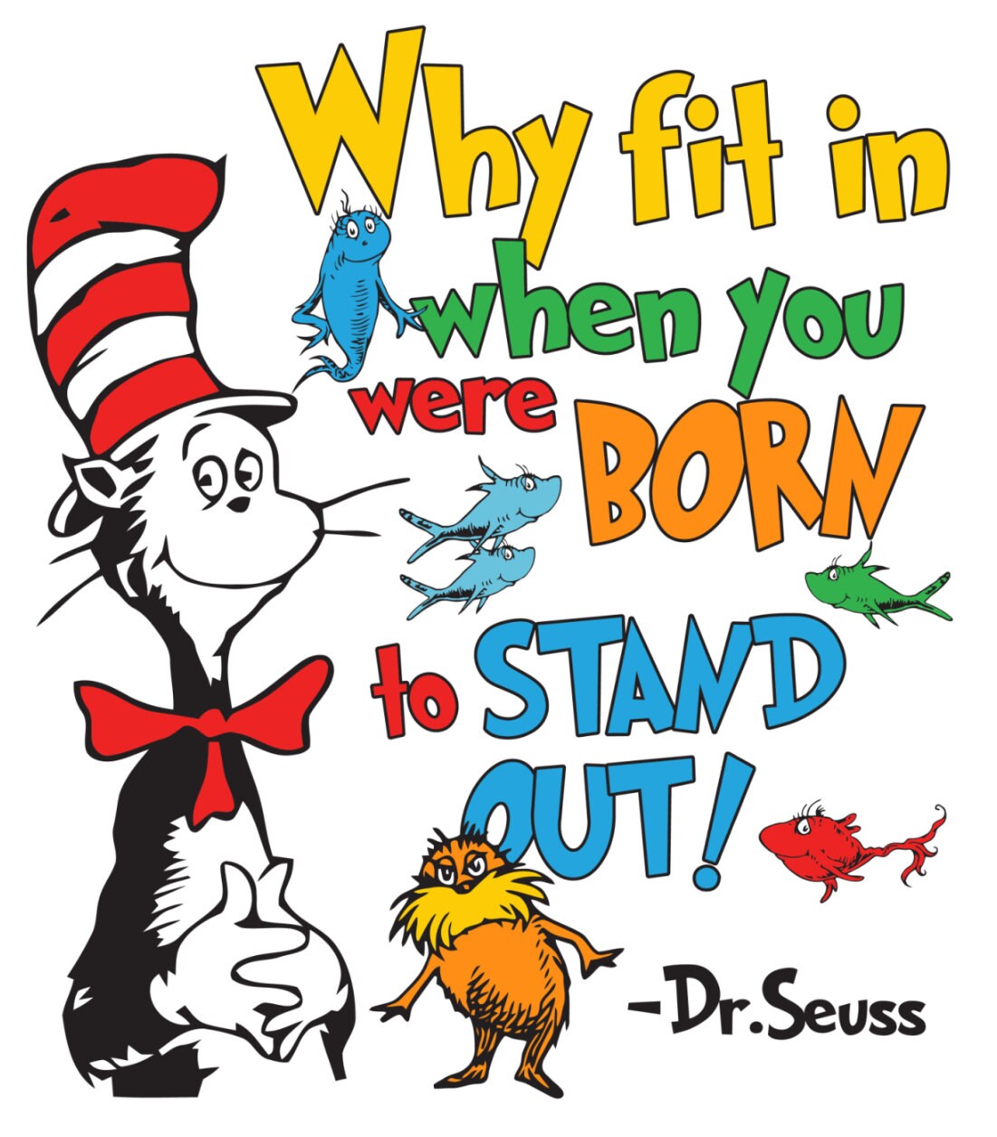 Dr. Seuss Why Fit In - (transparent Background) - Ready to Press Iron on transfer